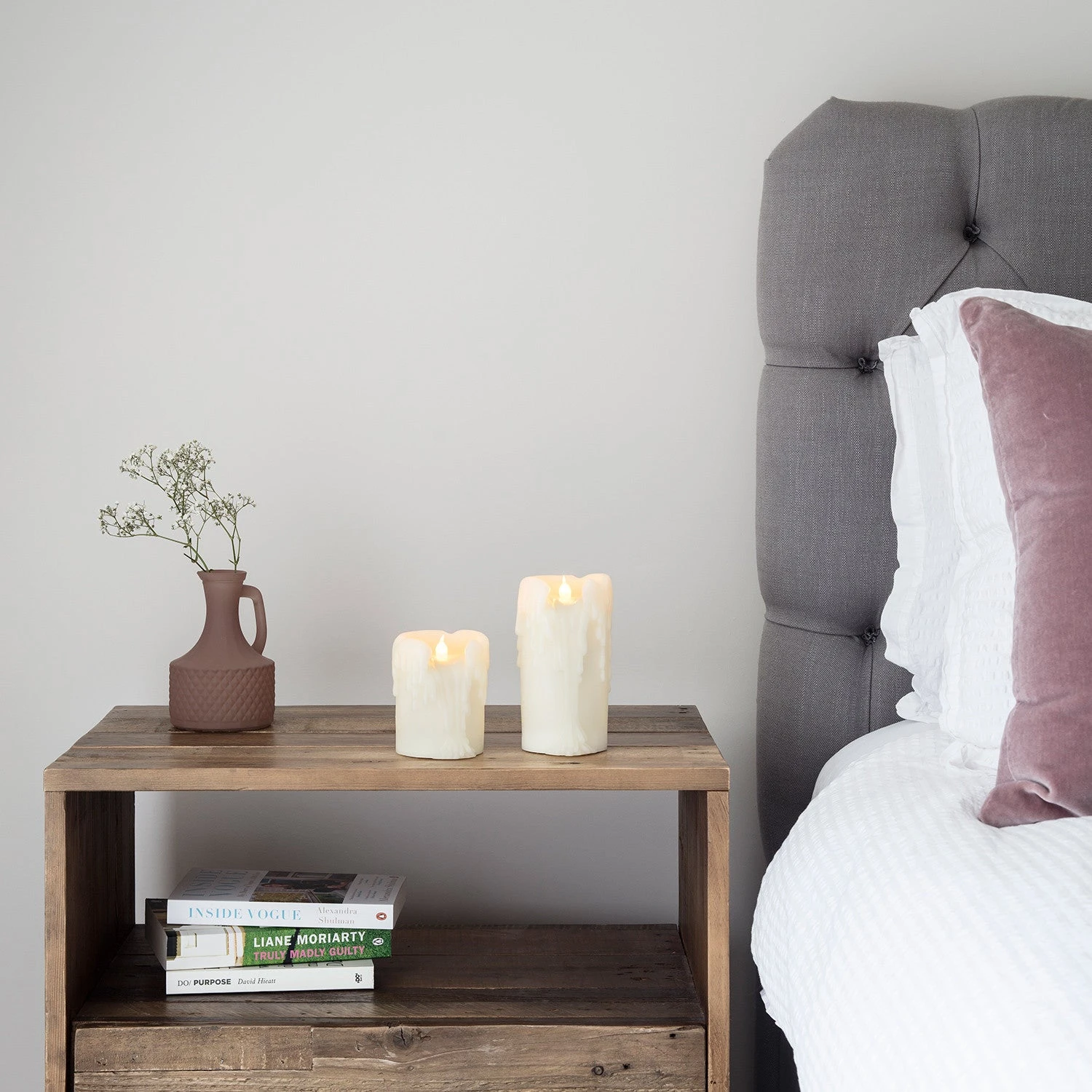 Veuillez noter que ces bougies sont fabriquées à partir de cire véritable et ne doivent pas être placées à la lumière directe ou près d’une source de chaleur, car elles risquent de fondre.