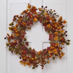 Lot Couronne Automnale Citrouilles Et Pommes De Pin De 50 Cm Et Micro LED