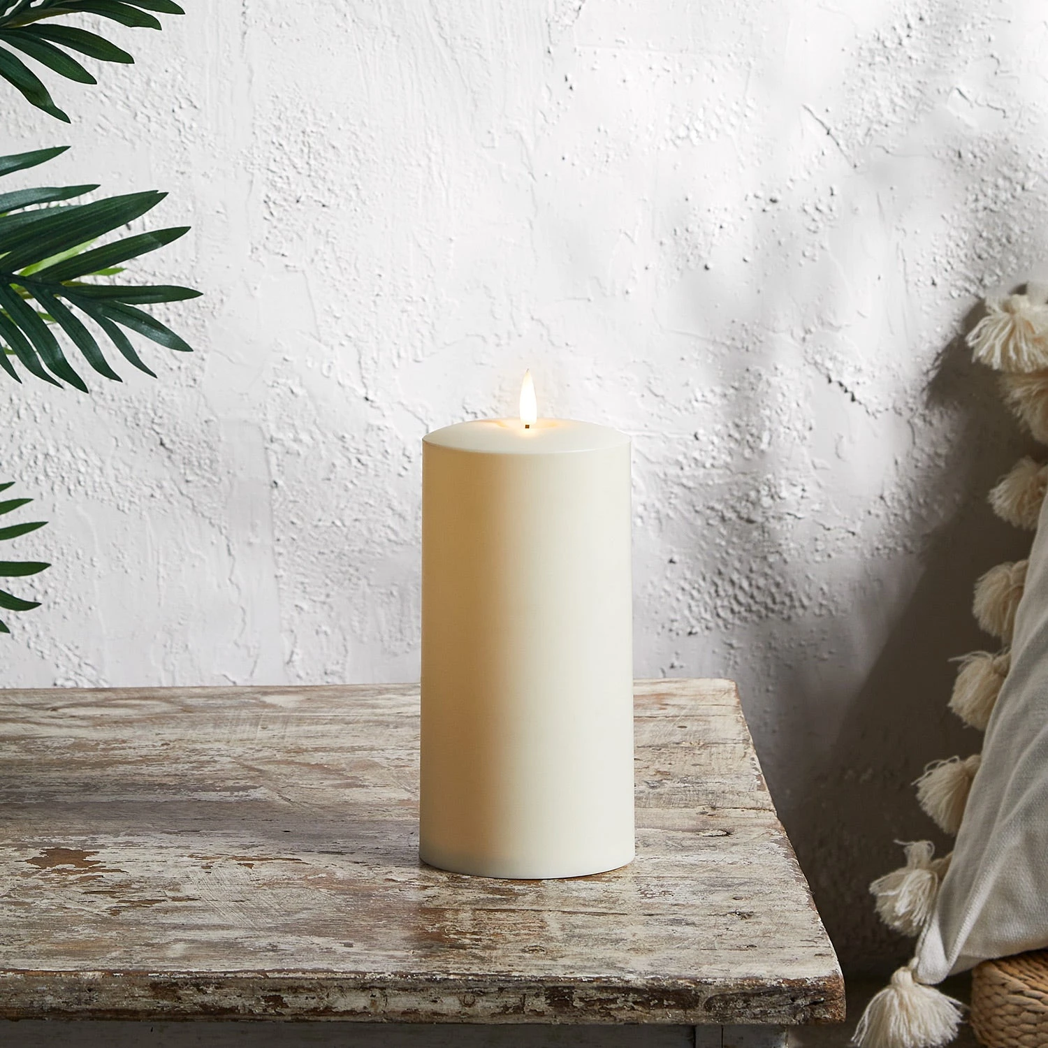 Notre bougie TruGlow® de 20 cm a été spécialement conçue pour être utilisée en extérieur. Cette bougie résistante aux intempéries vous mettra immédiatement dans l’ambiance. || Elle accompagnera parfaitement bien nos autres bougies d’extérieur ou une lanterne de jardin pour un éclairage complet. La flamme vacillante semble avoir été tout juste allumée pour un effet très réaliste et la LED reste froide au toucher. Insérez les piles et choisissez la fonction minuterie de 6 heures pour profiter d’un éclairage automatique à la même heure tous les soirs. La bougie vous fournira jusqu’à 1200 heures d’éclairage, avant que vous n’ayez à changer les piles.