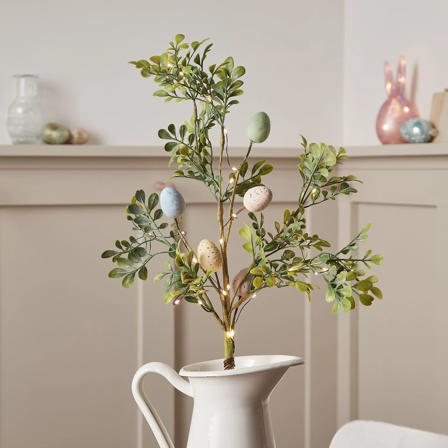 Donnez à votre intérieur un petit air de Pâques avec notre branche lumineuse pré-éclairée ! Avec leur aspect très naturel, ces branches apporteront une ambiance joyeuse dans tous les recoins de votre maison pour Pâques. Éclairées par 30 LED blanc chaud et d’une hauteur de 30 cm, elles créeront une atmosphère chaleureuse dans n’importe quelle pièce. Vous pouvez grouper plusieurs branches (vendues individuellement) pour en faire un joli centre de table ou les associer à d’autres fleurs artificielles. Pour les allumer, il suffit d’insérer 2 piles AA et d’activer la minuterie pratique.
