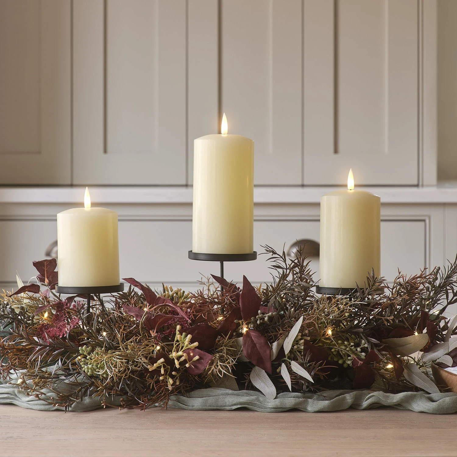 Des patins en caoutchouc assurent la stabilité de l’ensemble, mais nous vous recommandons de choisir soigneusement son emplacement pour éviter tout incident. Pour une ambiance encore plus chaleureuse, ajoutez trois bougies piliers TruGlow® couleur ivoire (vendues séparément) et placez le tout sur une nappe blanche. L’effet lumineux dès la tombée de la nuit sera tout simplement enchanteur.