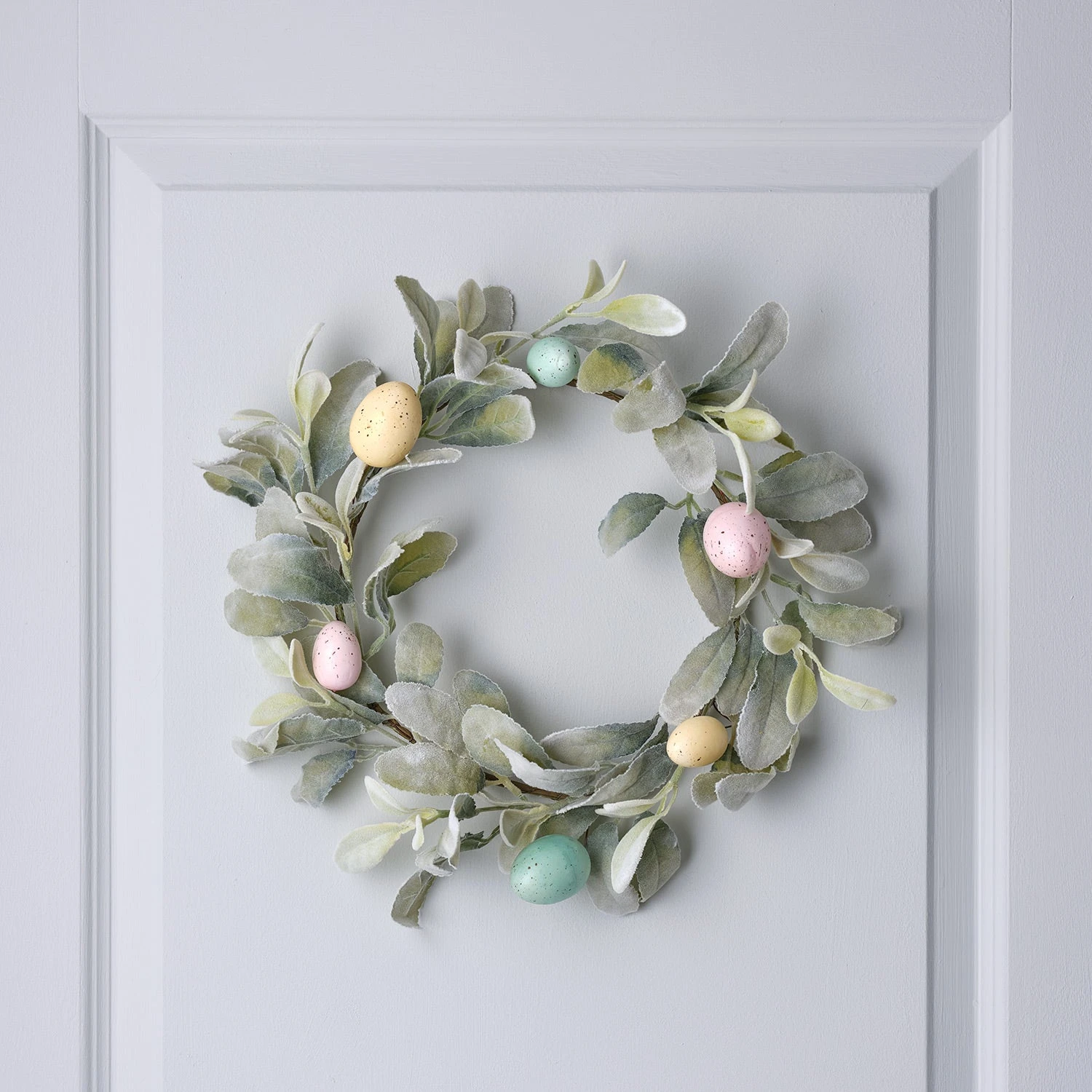 Apportez une touche joyeuse à vos célébrations de Pâques avec cette jolie couronne saisonnière de 40 cm de diamètre. Conçue avec un cadre fin en fil métallique orné de feuillage artificiel délicat, elle est agrémentée de six œufs mouchetés dans des teintes pastel douces. Polyvalente et élégante, cette couronne s’intègre parfaitement à toutes décorations. Ajoutez-y un ruban assorti pour la suspendre à une porte intérieure ou disposez-la sur votre table pascale avec des bougies TruGlow® pour créer un charmant centre de table printanier.