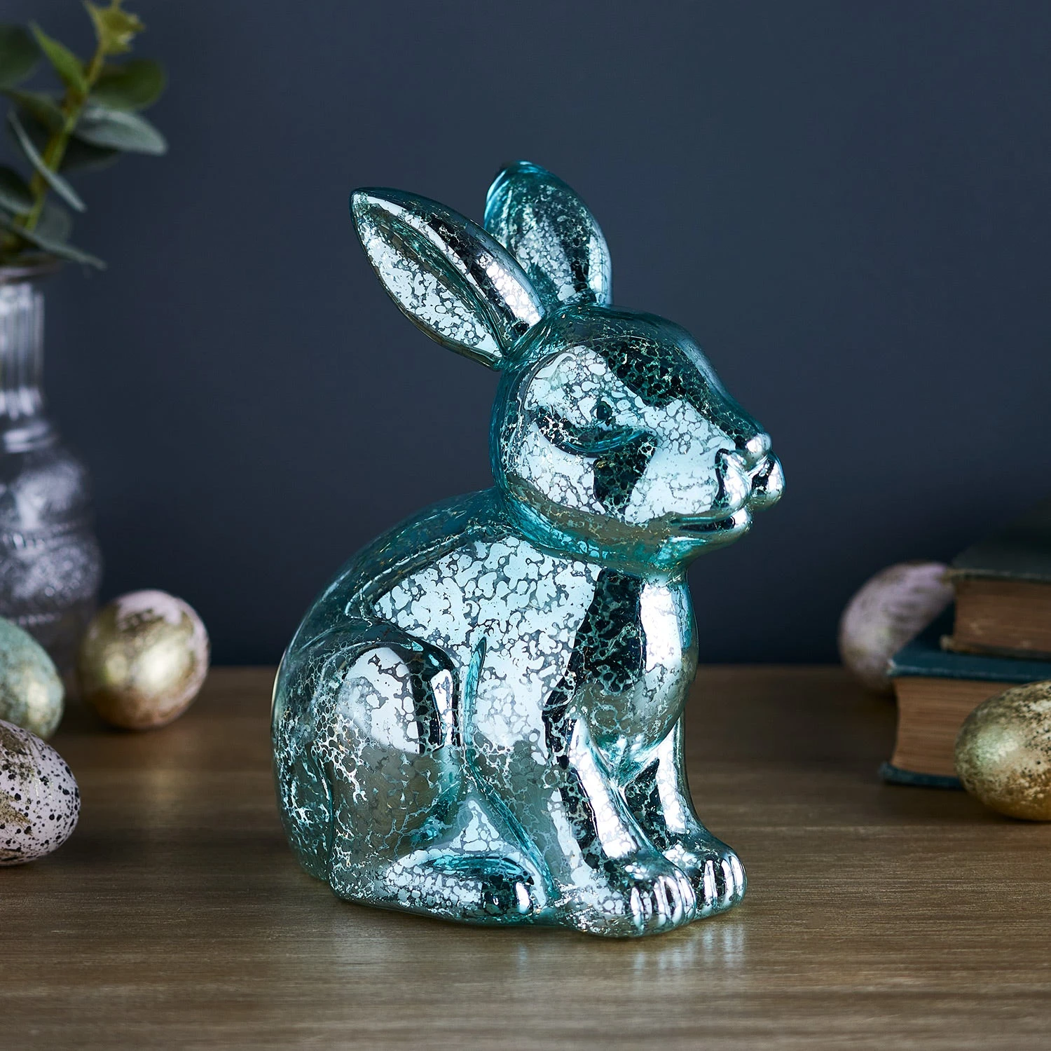 Avec son fini bleu moucheté, notre lapin lumineux en verre apportera une touche contemporaine à votre déco de Pâques. Mesurant 15cm de haut et 9cm de large, notre lapin sera idéal placé sur le manteau de la cheminée ou en décor de table pour une touche délicate de saison. || Fabriqué en verre, le lapin abrite 6 LED blanc chaud pour une douce lueur, une fois allumé. Insérez tout simplement les piles et choisissez la fonction minuterie 6h pour un allumage automatique soir après soir à la même heure. Profitez de jusqu’à 100h d’illumination avant de devoir remplacer les piles.