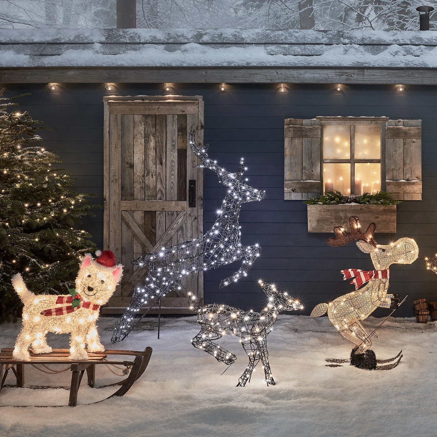 Entrez comme il se doit dans la saison féérique de Noël avec ce charmant petit élan monté sur des skis ! Mesurant 86 cm de haut, ce personnage aux traits sympathiques semble tout droit lancé sur une piste de ski. || Il animera joyeusement votre jardin tout au long de l’hiver. Étanche, il peut tout à fait être laissé dehors et résiste à tous les temps ! Grâce au câble d’alimentation pratique de 8 m de long, vous pouvez facilement le brancher à une prise et l’admirer tout illuminé de 50 LED blanc chaud. Utilisez la minuterie pour qu’il s’éclaire automatiquement comme par magie tous les soirs à la même heure.