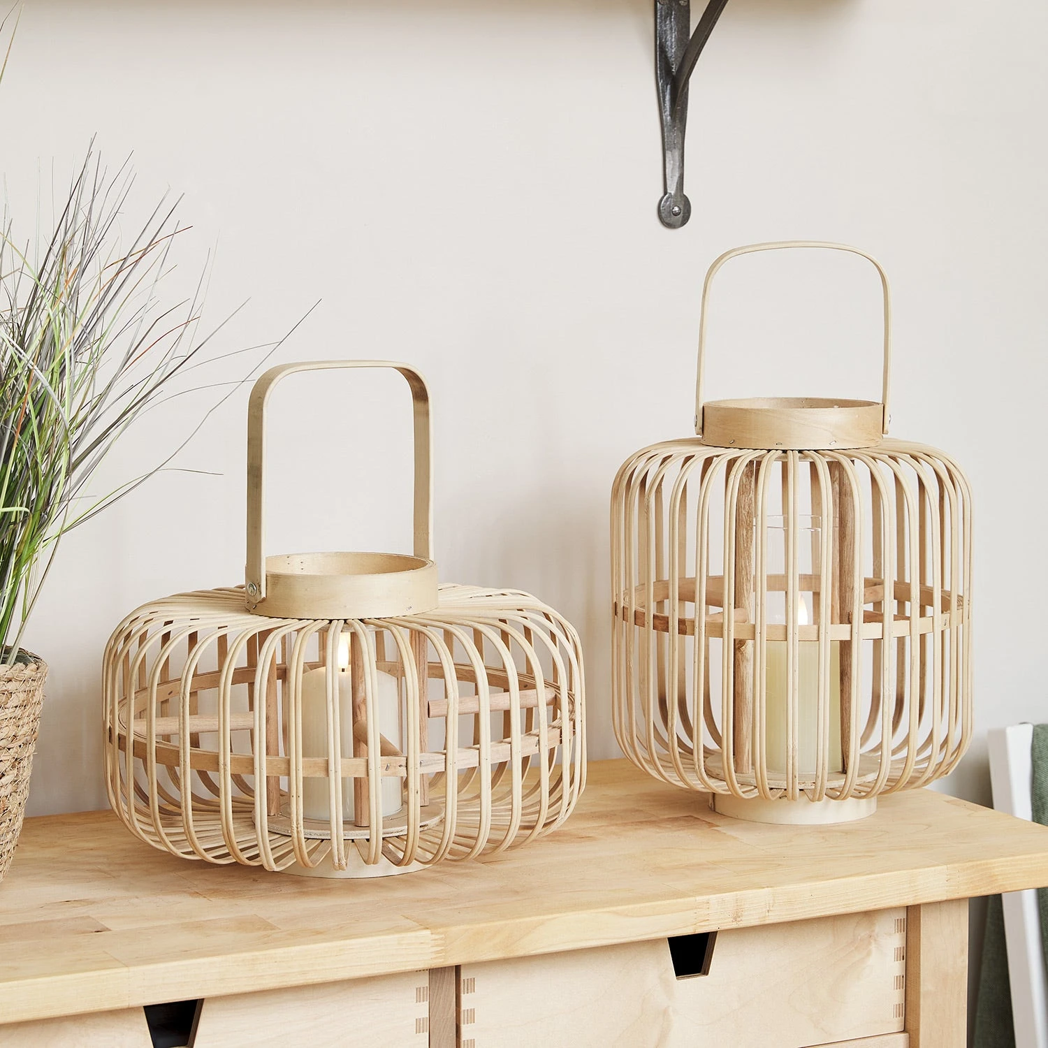 Obtenez l’ultime lueur de jardin cet été avec notre duo de lanternes en bambou avec bougies TruGlow®. D’une hauteur de 21 cm et 31 cm, ce duo contemporain est parfait pour ajouter une lueur calme et relaxante à votre espace. Chaque lanterne est dotée d’un tube en verre fixe qui abrite une bougie TruGlow® étanche pour transformer votre espace en un lieu confortable tout au long des mois d’été. Placez vos lanternes autour de vos sièges en plein air ou sur les tables pour ajouter une chaude lueur dorée à vos réunions d’été. Insérez simplement 2 piles C dans la base de chaque bougie et choisissez le minuteur optionnel de 6 heures pour une illumination automatique nuit après nuit !