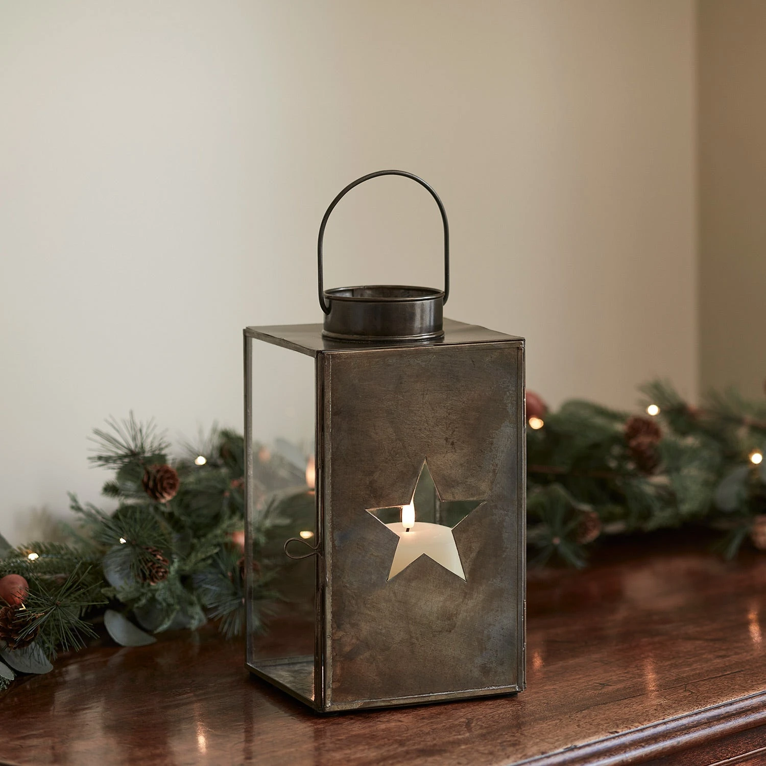 Complétez votre déco de Noël avec cet ensemble de lanternes étoilées assorties et de bougies. Associées au chatoiement de nos bougies TruGlow®, ces lanternes parent votre intérieur de leur élégance pendant les fêtes. || Installez-les au pied de la cheminée ou sur une table d’appoint pour profiter de leur lumière chaleureuse tous les soirs. Notre grande lanterne fait 33 cm de haut, tandis que la plus petite fait 26 cm et chacune est livrée avec une bougie. Nos bougies TruGlow® associent de la vraie cire coulée à la main à une technologie innovante qui imite à la perfection le chatoiement d’une vraie flamme. Insérez 2 piles AA dans chacune des bougies, programmez la Fonction minuterie 6 h et posez les bougies dans les lanternes. Leur flamme vacillante et apaisante s’allumera automatiquement tous les soirs à la même heure !