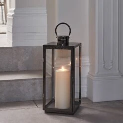 Grande Lanterne En Acier Inoxydable Avec Bougie LED TruGlow®