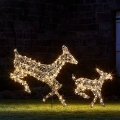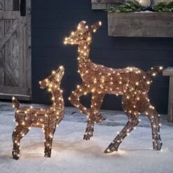 Duo De Rennes De Noël Harlow En Rotin Biche Et Faon 300 LED Bicolore