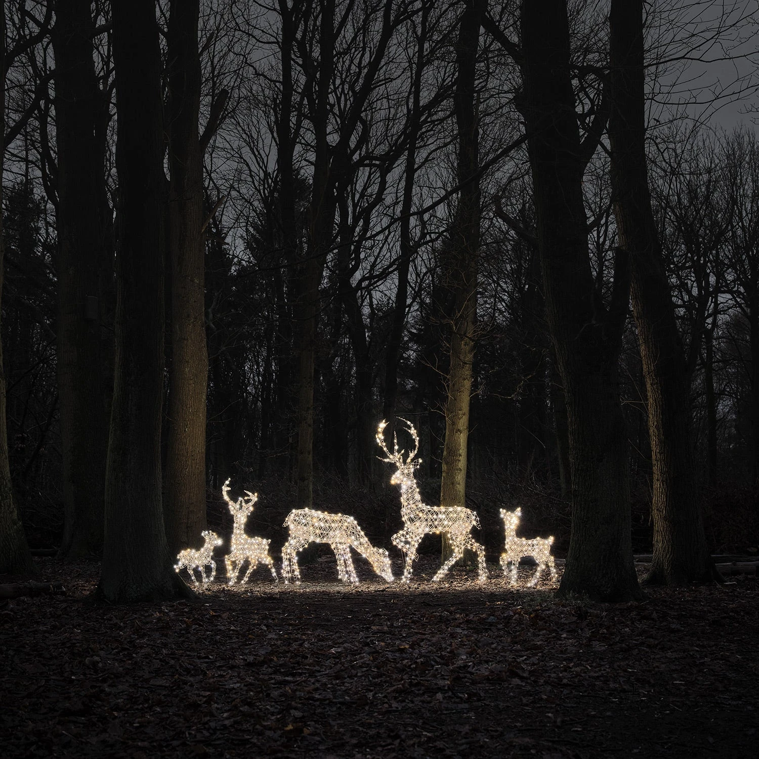 Le cerf Studley, majestueux avec ses 260 LED et ses 115 cm de hauteur, sera la pièce maîtresse de votre jardin. La biche Studley, élégante et raffinée, mesure 88 cm et brille grâce à 190 LED. Quant au faon Studley, attendrissant et plein de charme, il mesure 60 cm et s’illumine de 110 LED. Ensemble, ils forment une scène lumineuse enchantée qui émerveillera vos invités et passants.