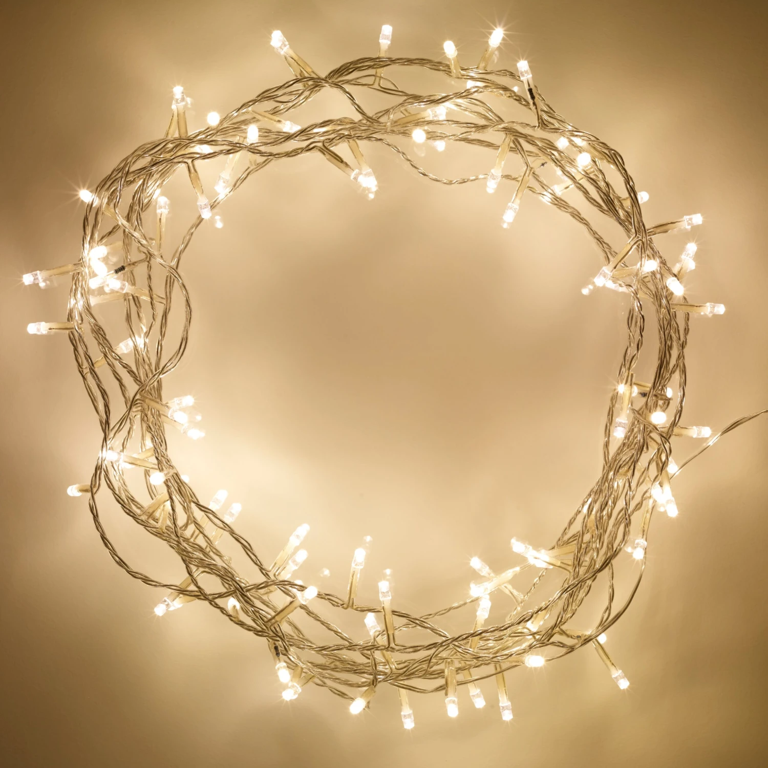 Répandez quelques scintillements avec notre merveilleuse guirlande lumineuse aux LED blanc chaud. || Avec 200 LED dispersées sur un câble transparent léger, elle est parfaite pour enrouler ou draper à travers votre maison.