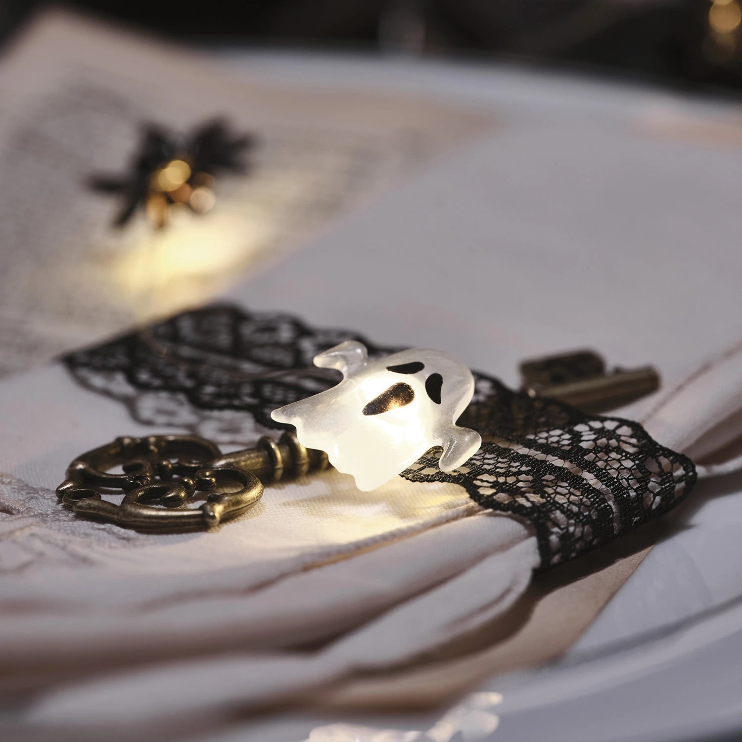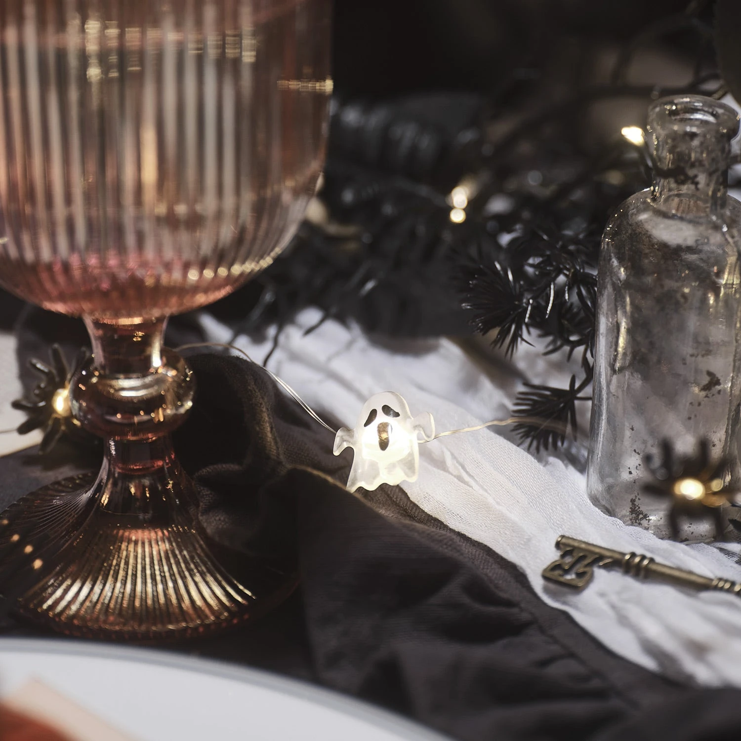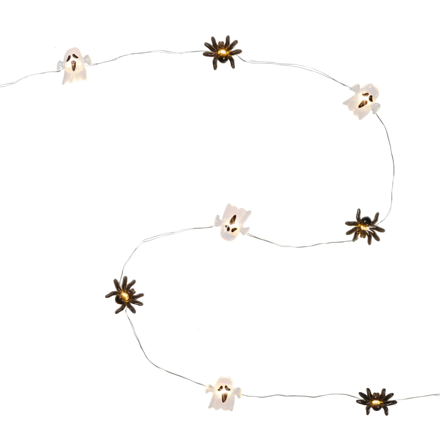 Apportez une ambiance typiquement Halloween avec notre guirlande micro LED fantômes et araignées. Cette guirlande délicate alterne 10 petits fantômes et 10 araignées, chacun illuminé par une LED blanc froid. Disposez-la sur un tableau dans la cuisine, au-dessus de vos préparatifs de fête, ou enroulez-la autour de votre décoration de table pour créer une atmosphère à la fois ludique et effrayante.