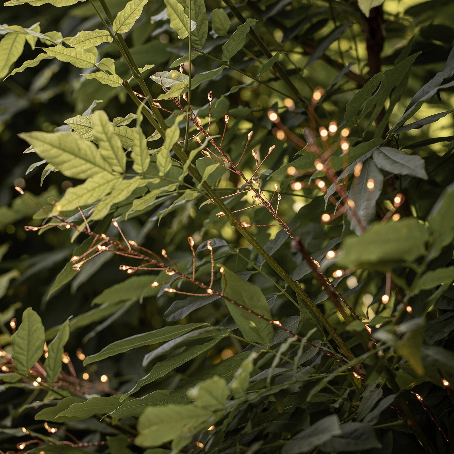 Sublimez votre jardin avec notre ensemble d’herbes décoratives en cuivre. Chacune des trois tiges est agrémentée de 28 LED blanc chaud, ajoutant une lueur enchanteresse à votre parterre de fleurs. || Grâce au capteur de crépuscule intégré, les LED s’allument automatiquement après le coucher du soleil, répandant une touche de féérie dans votre jardin. Ces décos lumineuses en cuivre ajouteront une ambiance chaleureuse et féerique à votre espace extérieur, créant une atmosphère captivante pour vos soirées en plein air. Pour une performance optimale, le panneau solaire requiert une exposition directe au soleil, permettant ainsi à la batterie solaire intégrée de se charger pleinement.