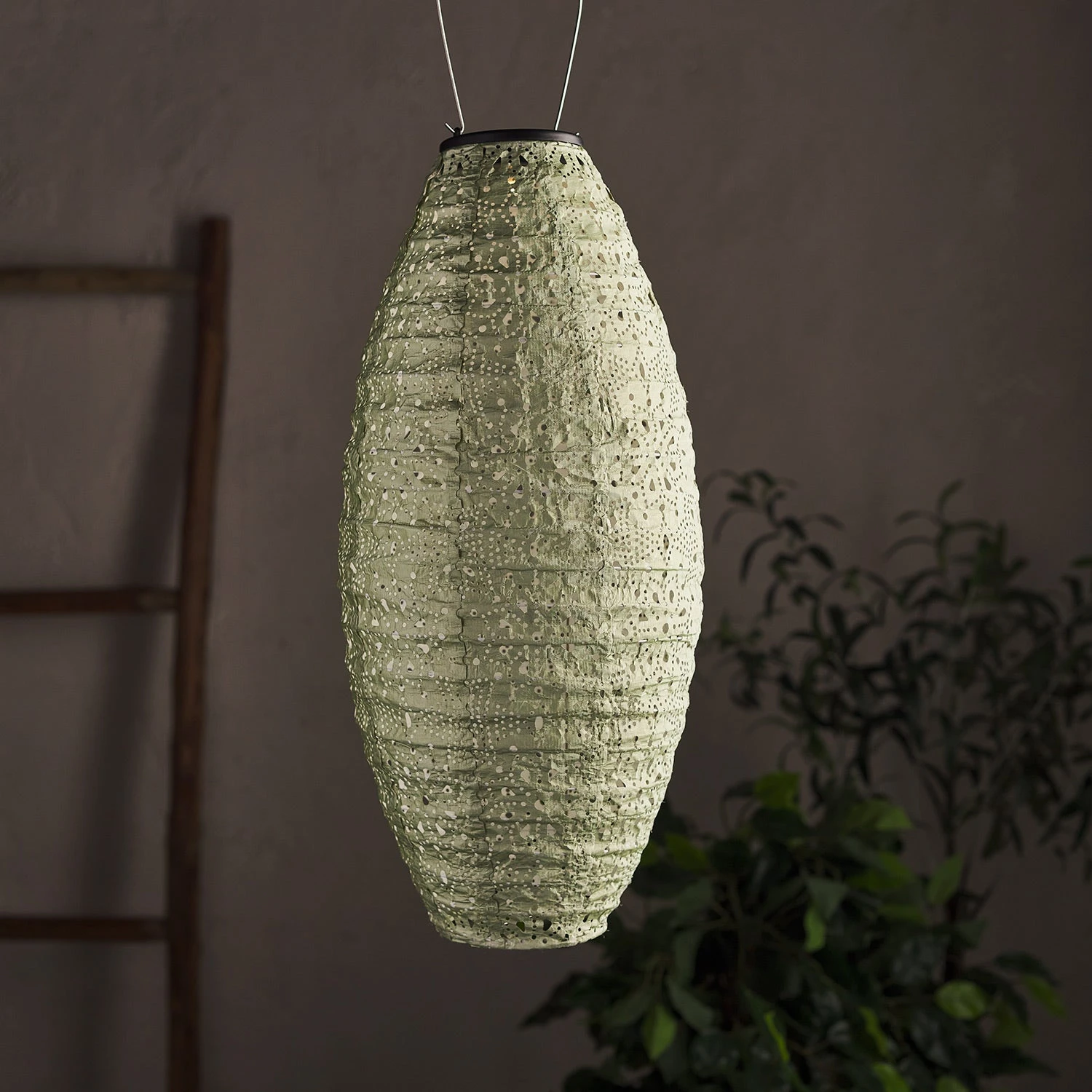Illuminez votre jardin cet été avec notre longue lanterne ovale suspendue. Dans une élégante nuance de vert menthe, cette décoration solaire est l’accessoire parfait pour ajouter une subtile touche de couleur à votre jardin d’été. || Le matériau Tyvek est respirant et résistant à l’eau, ce qui signifie que vous pourrez profiter de votre lanterne pendant de nombreuses années ! Chargez votre lanterne pendant la journée en la suspendant dans votre endroit ensoleillé préféré et regardez-la s’animer la nuit en diffusant une chaude lueur blanche. Cette lanterne intemporelle est parfaite seule ou associée au reste de notre gamme de lanternes Tyvek pour une célébration de la couleur qui durera toute la saison ! Une fois complètement chargée, vous pouvez compter sur 6 heures d’illumination chaque soir d’été.
