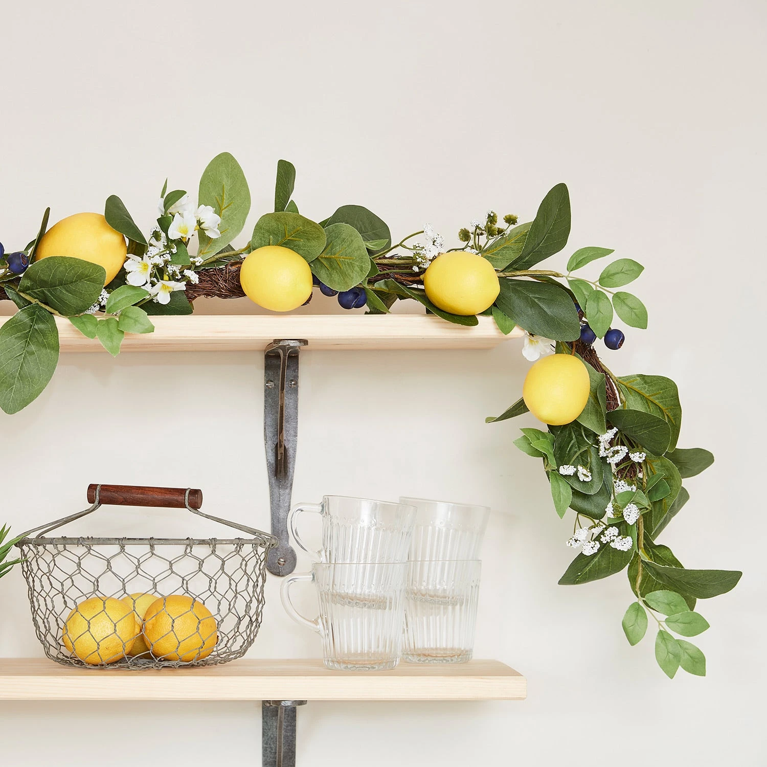 Ajoutez une touche printanière à votre maison avec notre duo de couronnes et de guirlandes au citron. Avec du faux feuillage, des citrons brillants, des myrtilles et de délicates fleurs blanches, ce lot unique créera l’élément saisonnier parfait dans votre maison. Suspendez la guirlande aux portes ou aux murs et faites-la courir le long des étagères ou de votre cheminée pour donner vie à votre maison. Les deux pièces peuvent également servir de décorations de table pour une présentation saisonnière parfaite. Pour une touche finale, entrelacer-les avec des micro-lampes (vendues séparément) pour un scintillement printanier et chaleureux.