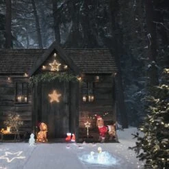 Chien Lumineux Avec Bois De Cerf à Guirlande Multicolore, Figurine De Noël De 80 Cm