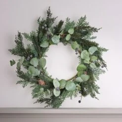 Lot De Couronne De Noël Pré-éclairée Avec Baies Et Pommes De Pins Et Bougies TruGlow®