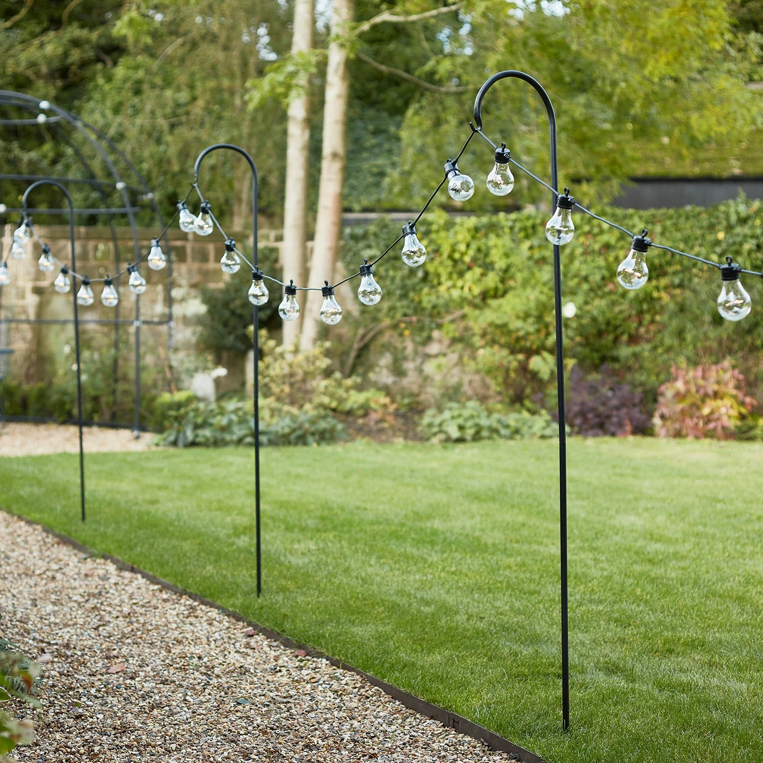 Accrochez facilement vos guirlandes lumineuses grâce à ce bâton de berger. C’est le moyen idéal pour embellir votre jardin lors d’une manifestation ou d’une garden party. || Ce bâton est réalisé en métal noir résistant aux intempéries, c’est la garantie de le garder élégant et stylé tout au long de l’année. Plantez-les profondément dans le sol et drapez vos guirlandes tout autour de votre jardin. Chaque bâton est livré en 2 parties, ce qui nécessite un petit assemblage. La hauteur totale avec la fiche à planter est de 160 cm.