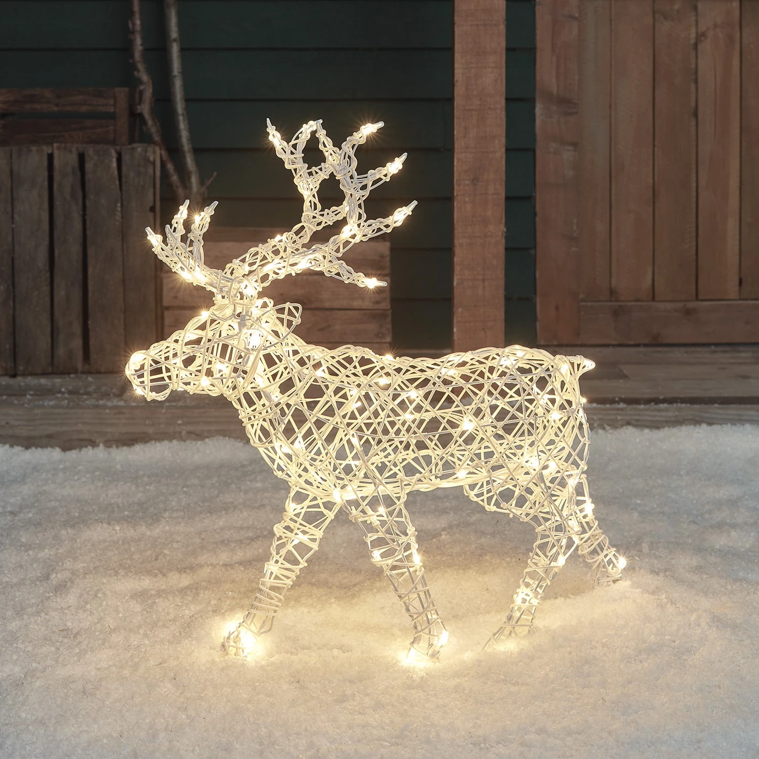 Partez pour une aventure au pôle Nord avec notre renne à LED bicolore Arkendale. D’une hauteur de 70 cm et conçu minutieusement en interne en étudiant de près de véritables caribous pour leur donner une allure aussi authentique qui soit, cette figurine de Noël à brancher ne manquera pas de créer des souvenirs magiques pour les Noëls à venir. Dotés de 100 LED Bicolores, ce renne vous offrent la possibilité de choisir entre un éclairage blanc, blanc chaud ou un mélange des deux, ce qui vous permet de créer une ambiance saisonnière homogène assortie au reste de vos illuminations de Noël extérieures. La structure métallique faite à la main est recouverte d’un plastique blanc imitation rotin. Pour l’utiliser, il suffit de le brancher à l’aide du câble d’alimentation de 8 m, de choisir la couleur de LED de votre choix et d’opter pour la fonction minuterie optionnelle de 6 heures pour une illumination automatique à la même heure chaque soir.