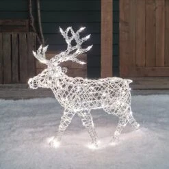 Embarquez pour une aventure en traîneau sur la neige avec notre renne bicolore LED Arkendale avec traîneau ! D’une hauteur de 70 cm et fonctionnant à piles, cette figurine de Noël peut être installée n’importe où dans votre jardin. La structure métallique faite à la main est recouverte d’un plastique blanc imitation rotin. Le renne d’Arkendale a été conçu en interne, en étudiant de près de véritables caribous pour leur donner une allure aussi authentique qui soit. Dotés de 200 LED Bicolores, ce renne à traineaux vous offrent la possibilité de choisir entre un éclairage blanc, blanc chaud ou un mélange des deux, ce qui vous permet de créer une ambiance saisonnière homogène assortie au reste de vos illuminations de Noël extérieures. Avec la possibilité de connecter jusqu’à 6 rennes au total, vous pourez créer un décor de Noël des plus impressionnant. Pour l’utiliser, il suffit simplement de placer les 3 piles D dans le compartiment à piles et d’utiliser la fonction minuterie optionnelle de 6 heures pour une illumination automatique à la même heure chaque soir.